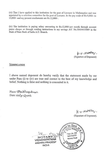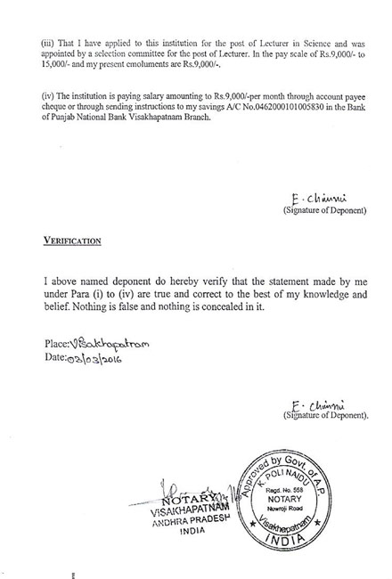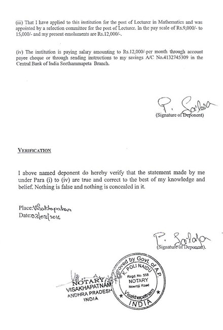 Appala Naidu Affidavit