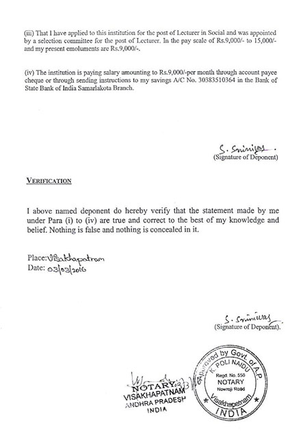 S.Srinivas Affidavit